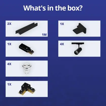 | Herstellername | Complete L shaped 1-Phase Track Set Black incl. 4x Spot fixture + GU10 2700K 3W Dim – 1 x 1 meter i | |