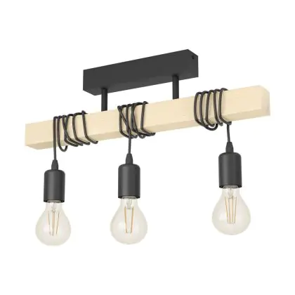 Eglo Deckenleuchte Townshend Stahl Holz Schwarz Braun | IP20 - Geeignet für 3x E27