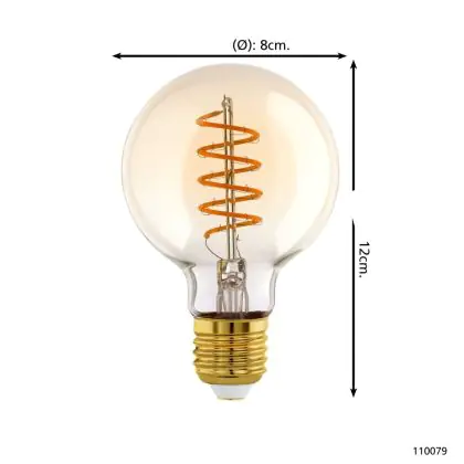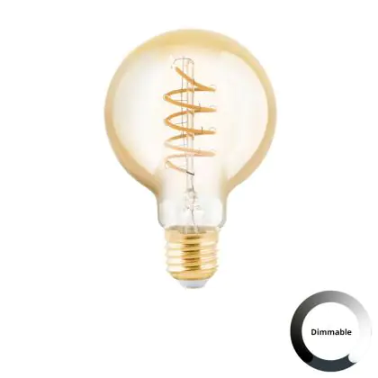 Die Eglo LED Globe E27 Fadenlampe Messing 4W 245lm - 820 Extra Warmweiß | Dimmbar - Ersatz Für 25W ist eine effiziente E27 LED-Lampe mit Retrodesign und der perfekte Ersatz für Ihre konventionellen 25W Lampen mit E27. Zudem strahlt sie Licht in der Farbtemperatur 2000K - Extra Warmweiß aus und punktet durch eine lange Lebensdauer.
