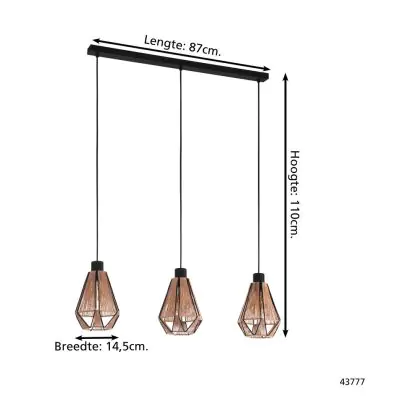 Eglo Pendelleuchte Adwickle Stahl Schwarz | IP20 - Geeignet für 3x E27