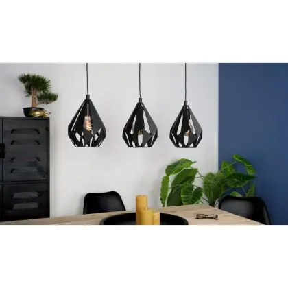 Die Eglo Pendelleuchte Carlton 5 Stahl Schwarz | IP20 - Geeignet für 3x E27 sorgt für eine angenehme Ausleuchtung und punktet durch modernes Design. Diese Leuchte ist speziell zur Montage an der Decke vorgesehen.