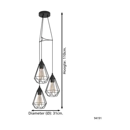 Beschreibung Eglo Pendelleuchte Tarbes Stahl Schwarz | IP20 - Geeignet für 3x E27
