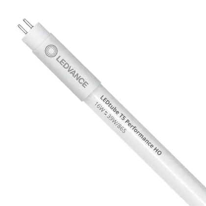 Die Ledvance LED Röhre T5 Performance (Mains AC) High Output 16W 2400lm - 865 Tageslichtweiß | 85cm - Ersatz für 39W ist eine effiziente LED-Röhre und der perfekte Ersatz für Ihre konventionelle Leuchtstoffröhre mit 39W und einem G5. Die Röhre hat eine Länge von 849 mm und einen Durchmesser von 19 mm. Zudem strahlt das Produkt Licht in der Farbtemperatur 6500K - Tageslichtweiß aus und punktet durch eine lange Lebensdauer.