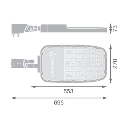 Beschreibung Ledvance Led-Straßenbeleuchtung Area Extra Large RV35ST Aluminium Grau 150W 19500lm 155X69D - 727 Extra Warmweiß | IP66 - Asymmetrisch