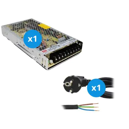 Ein weiteres praktisches Merkmal dieses Treibers ist das im Lieferumfang enthaltene 2 Meter lange Stromkabel mit Erdung, das die Installation erleichtert und zusätzliche Sicherheit bietet. Der LRS-200-24 Treiber ist kompakt und einfach zu integrieren, sodass er sich ideal für größere Beleuchtungsprojekte eignet.