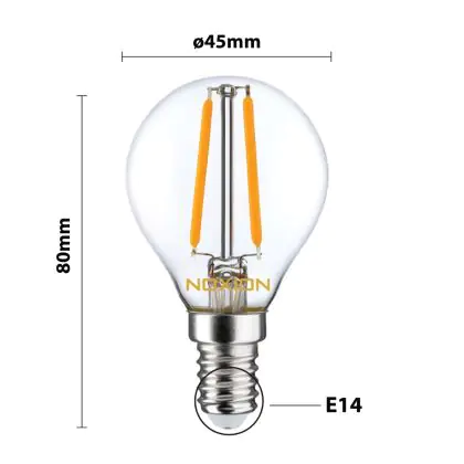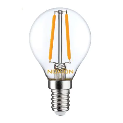Die Noxion Lucent Lustre LED E14 Kugel Fadenlampe Klar 2.5W 250lm – Dimmbar - Ersatz für 25W ist eine effiziente E14 LED-Lampe mit Retrodesign und der perfekte Ersatz für Ihre konventionellen 25W Lampen mit E14. Zudem strahlt sie Licht in der Farbtemperatur 2700K - Extra Warmweiß aus und punktet durch eine lange Lebensdauer.
