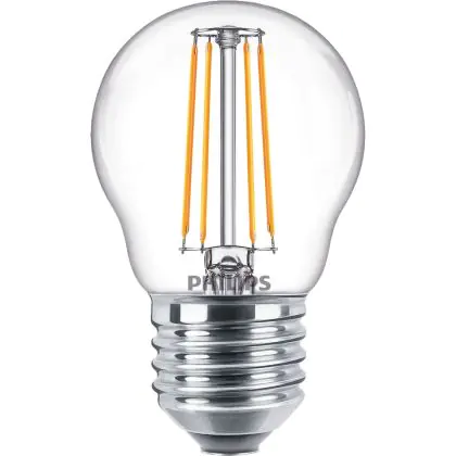 Die Philips Corepro LED Lustre E27 Kugel Fadenlampe Klar 4.3W 470lm - 827 Extra Warmweiß | Ersatz für 40W ist eine effiziente E27 LED-Lampe mit Retrodesign und der perfekte Ersatz für Ihre konventionellen 40W Lampen mit E27. Zudem strahlt sie Licht in der Farbtemperatur 2700K - Extra Warmweiß aus und punktet durch eine lange Lebensdauer.