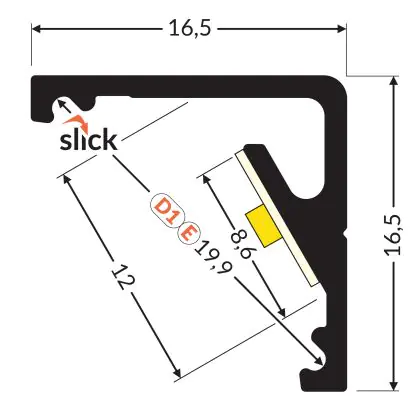 Beschreibung Topmet LED Profil CABI12 E slide - 1m - Complete set - Aluminium raw alu.